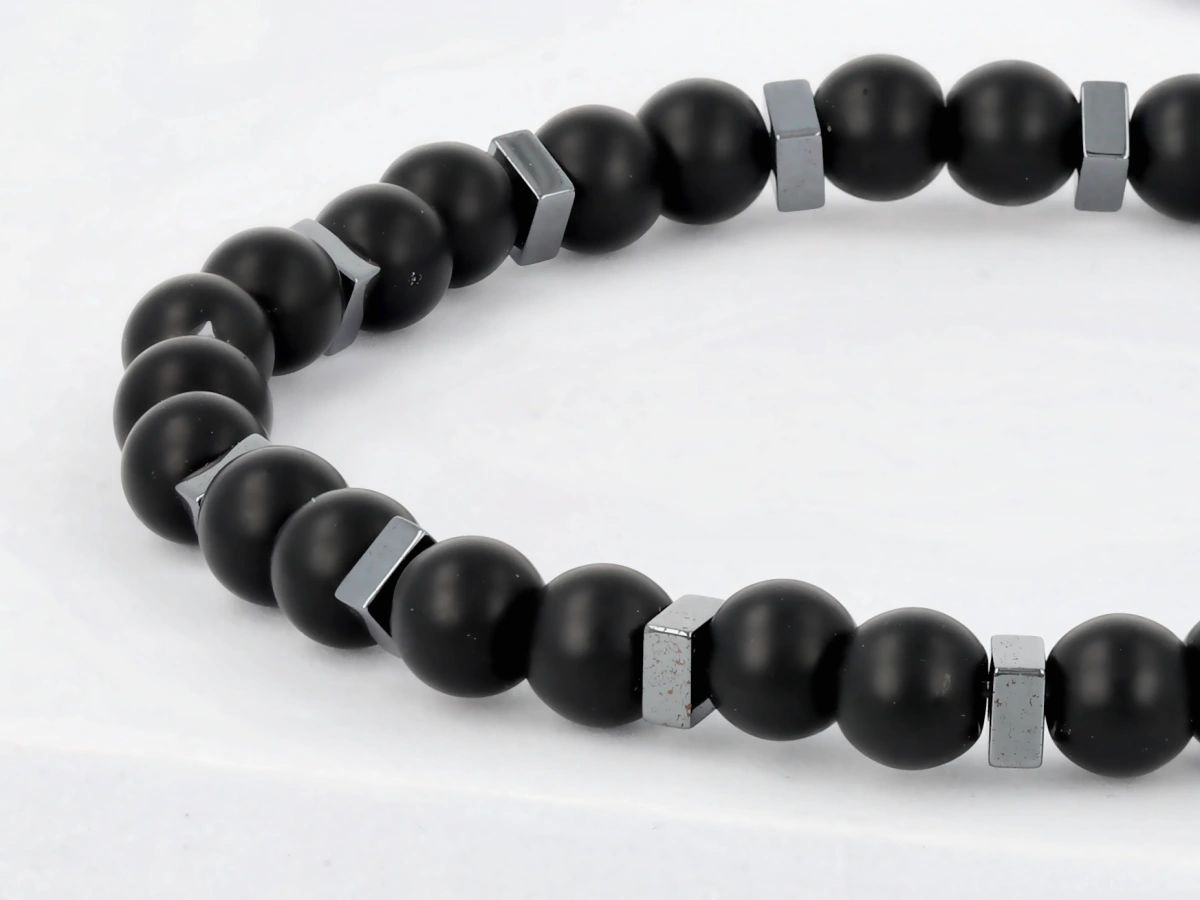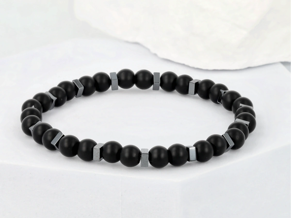 Matowe wykończenie koralików doskonale pasuje do męskiej estetyki. Bransoletka wygląda świetnie noszona solo, jak i w modnym zestawie z zegarkiem lub innymi koralikami.