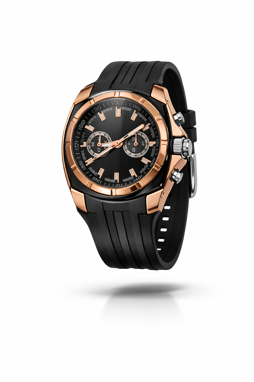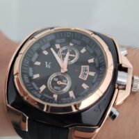 Zegarek V6 to synonim męskiej siły i nowoczesnego stylu. Zaprojektowany dla mężczyzn, którzy nie uznają kompromisów, łączy w sobie surowość sportowego designu z luksusowym wykończeniem w kolorze Rose Gold. Dynamiczna obudowa o unikalnym kształcie chroni precyzyjny mechanizm, stanowiąc jednocześnie wyrazisty akcent na nadgarstku, który buduje autorytet i przyciąga spojrzenia.